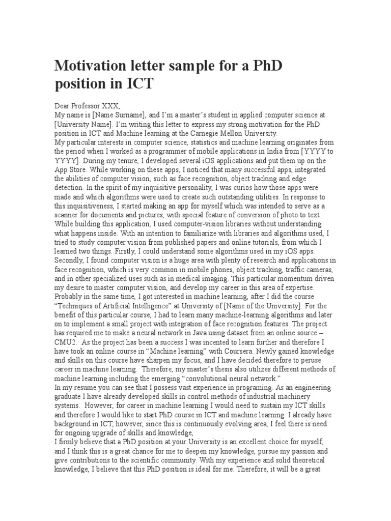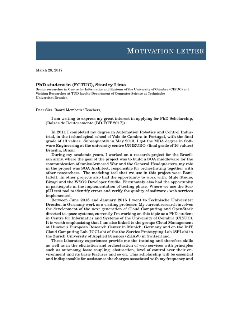 Motivation Letter Example For Phd